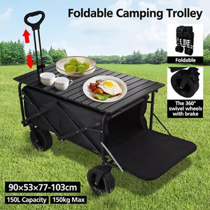 Free postage150L Foldable Wagon Cart Outdoor Garden Trolley Extended with Tabletop Brake
