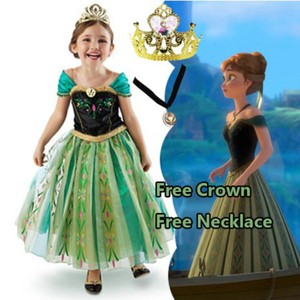 Free postageGirl Anna Frozen Costume Dress Party with Tiara and Necklace size 3-11 Years