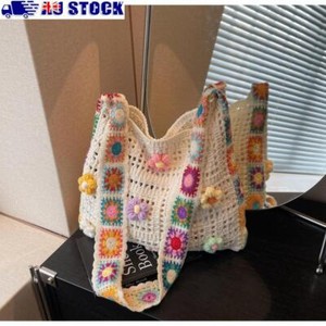 Free postageBoho Crossbody Bags Floral Crochet Tote Bag New Women Shoulder Bag
