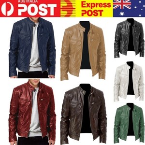 Free postageMens Retro Leather Jacket Motorcycle Stand Collar Biker Coat Zip Up Outwear Top