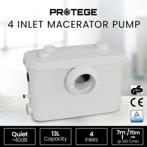 Free postagePROTEGE Macerator Pump 4 Inlet for Toilet Bathroom Sink Shower Washing Machine